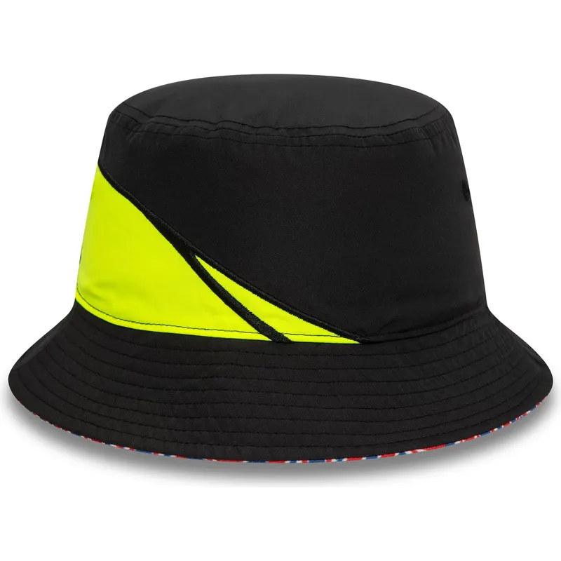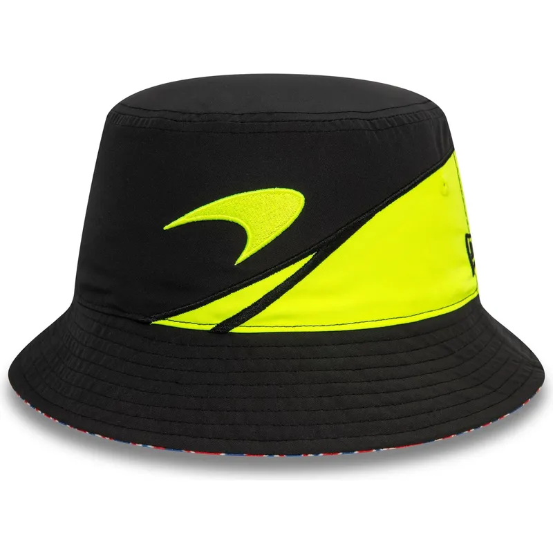 Den sorte og gule Silverstone Lando Norris McLaren Racing Formula 1 Bucket cap fra New Era er det perfekte supplement til fans af det ikoniske Formel 1-team samme tid.