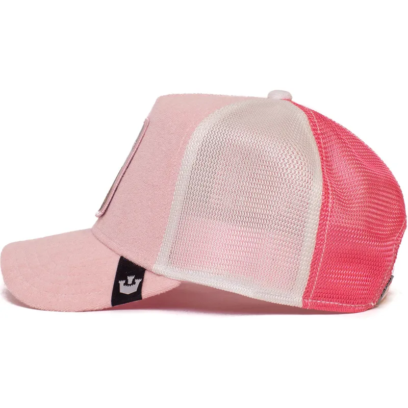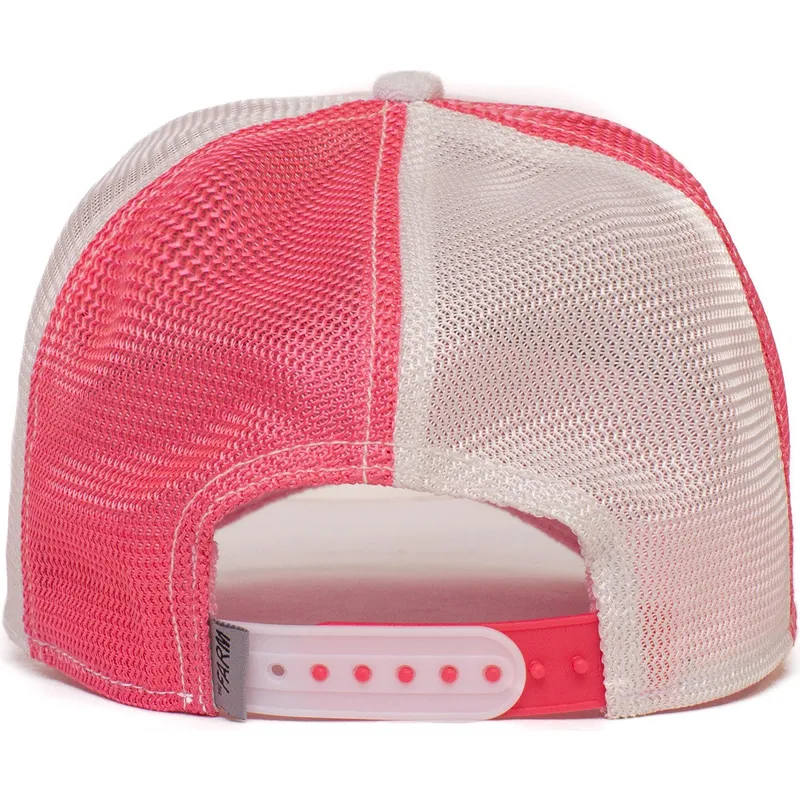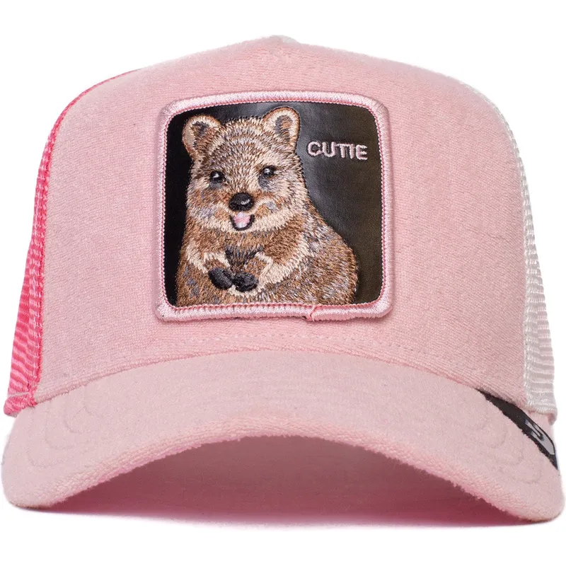 Goorin Bros. Cutie Smile More The Farm lyserøde quokka truckerkasket opfylder selvfølgelig også de funktionelle krav, der forventes af denne type kasket. Dens trucker-stil er behagelig, cool og let, og dens snapback-lukning garanterer en sikker og personlig pasform til enhver hovedstørrelse.