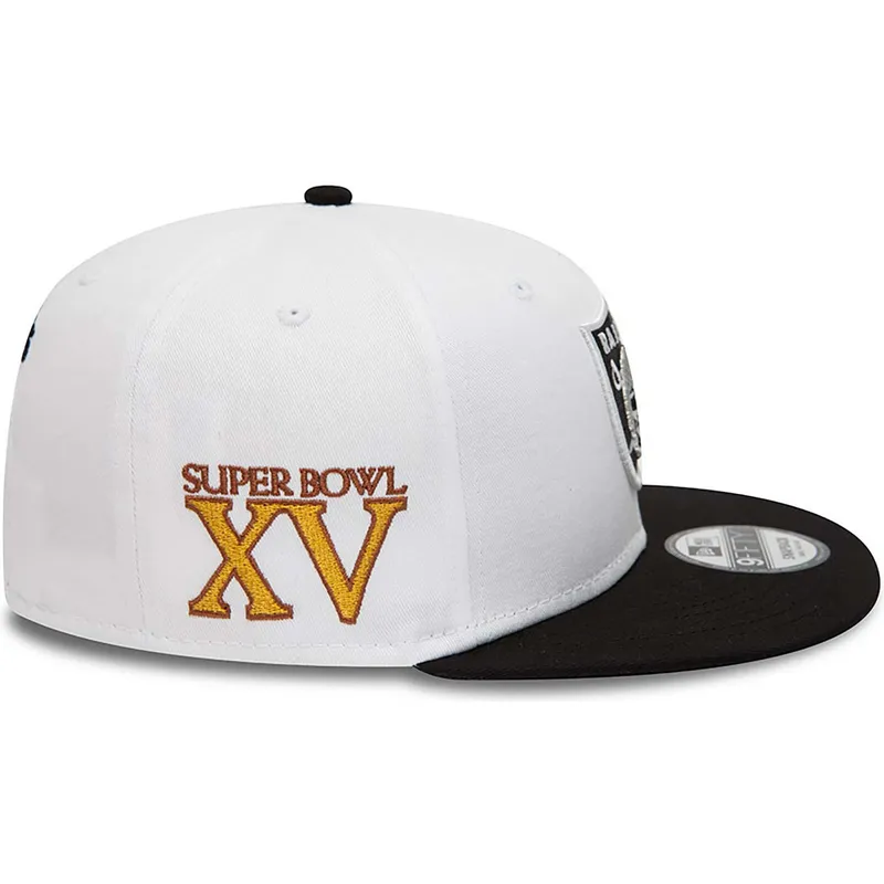 Hvid og sort snapback flad kasket 9FIFTY Crown Patches Super Bowl XV fra Las Vegas Raiders NFL fra New Era