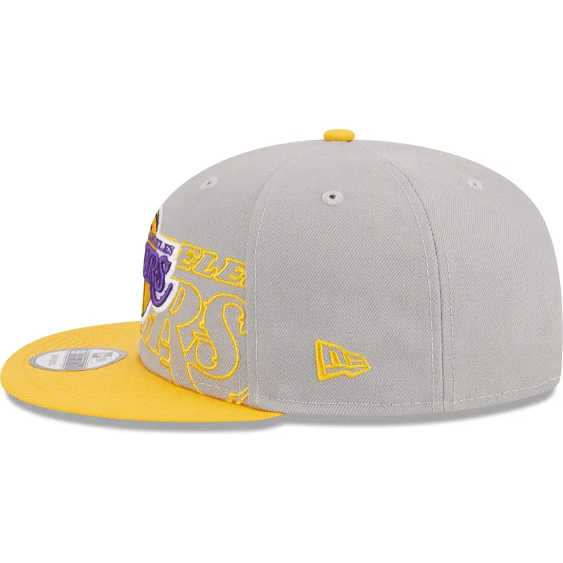 Grå og gul snapback fladskærm 9FIFTY Draft Edition 2023 Los Angeles Lakers NBA kasket fra New Era