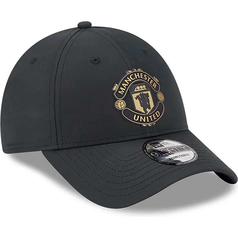 Sort justerbar baseballkasket med buet skygge og gyldent logo 9FORTY fra Manchester United Football Club Premier League fra New