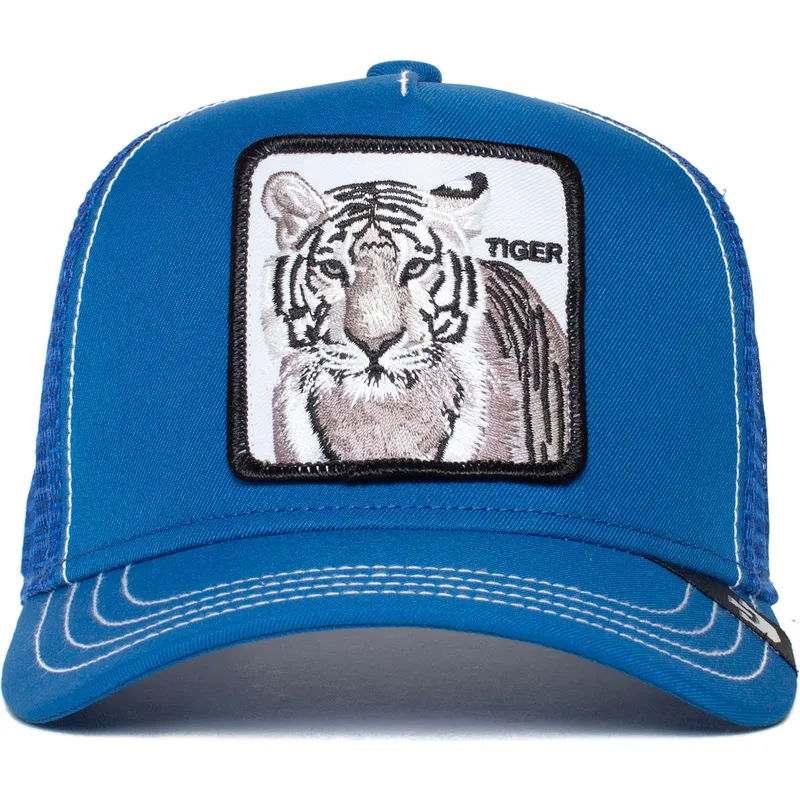 Goorin Bros. Tiger Stripe Earner The Farm boys blå trucker-kasket er det perfekte tilbehør til små elskere af mode og urban stil. Med sit unisex-design passer denne kasket til ethvert barn, der ønsker at skille sig ud med et strejf af originalitet. Snapback-lukningen sikrer en perfekt og behagelig pasform til enhver hovedstørrelse, mens tigerprintet giver det et vildt og sjovt præg.