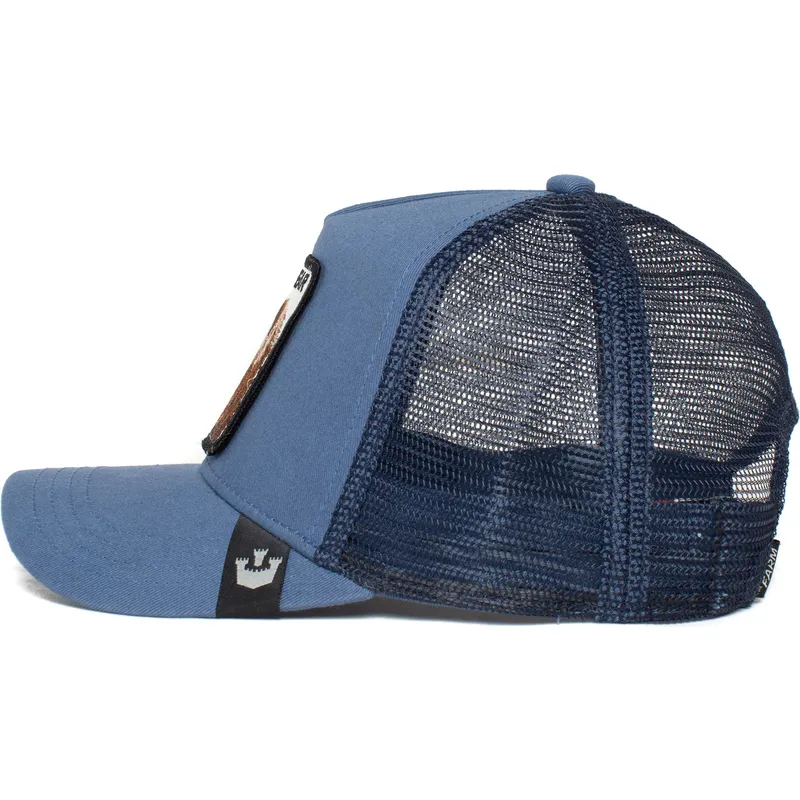 The Big Bear Truckin The Farm blå trucker kasket fra Goorin Bros. er et ikonisk stykke, der ikke må mangle i skabet til enhver voksen, der elsker urban og afslappet stil. Med sit unisex-design er denne kasket perfekt til at kombinere med ethvert outfit og give den et unikt strejf af personlighed. Snapback-lukningen garanterer en perfekt pasform til enhver hovedstørrelse, mens den broderede bjørn foran giver den et sjovt og originalt touch.
