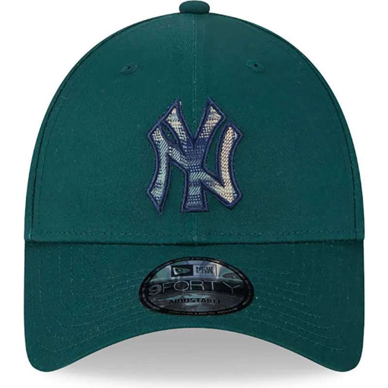 New Era New York Yankees MLB Green Justerbar 9FORTY Check Infill Curved Cap er et must-have tilbehør for enhver baseball elsker. Denne unisex design kasket er perfekt til voksne, der ønsker at vise en urban og sporty stil på samme tid. Den justerbare stroplukning sikrer en perfekt pasform til enhver hovedstørrelse, mens den grønne farve giver den et frisk og moderne touch.
