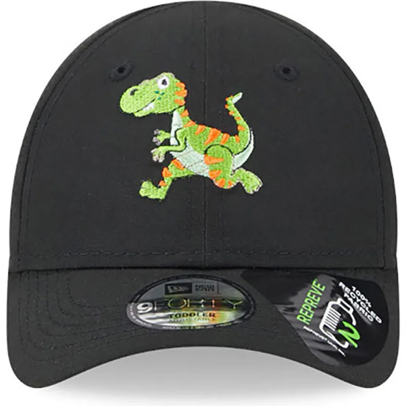 New Era 9FORTY REPREVE drengens sorte justerbare buede kasket er det perfekte tilbehør til små dinosaurelskere. Med et unisex-design er denne kasket ideel til ethvert barn, der ønsker at vise en unik og sjov stil frem. Den justerbare stroplukning gør, at den passer perfekt til ethvert barns hoved, hvilket sikrer komfort og sikkerhed til enhver tid.