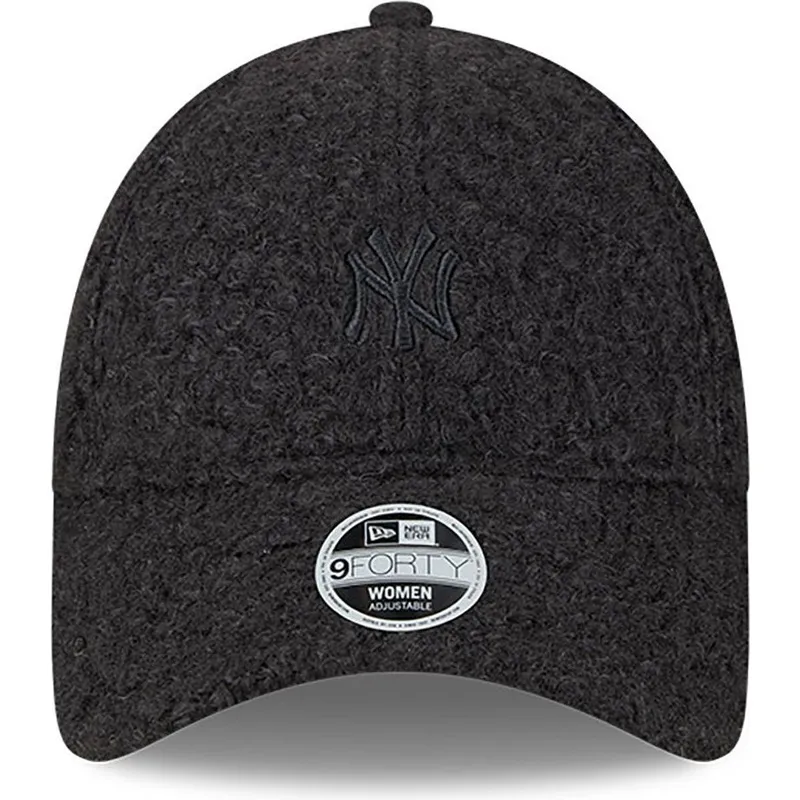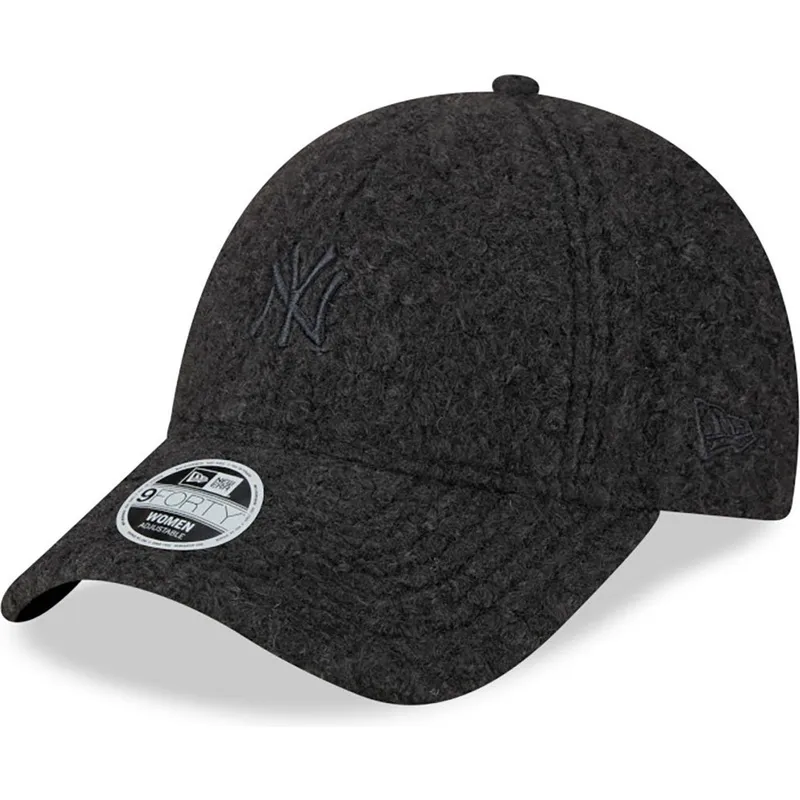New Era Women's 9FORTY Hypertexture New York Yankees MLB Black Logo Justerbar Buet Cap er et must-have for enhver fan af dette ikoniske baseballhold. Med et elegant og feminint design er denne kasket perfekt at have på ved enhver lejlighed. Det justerbare pandebånd sikrer en perfekt pasform til enhver hovedstørrelse, mens det sorte Yankees-logo skiller sig ud mod kaskettens sorte baggrund.