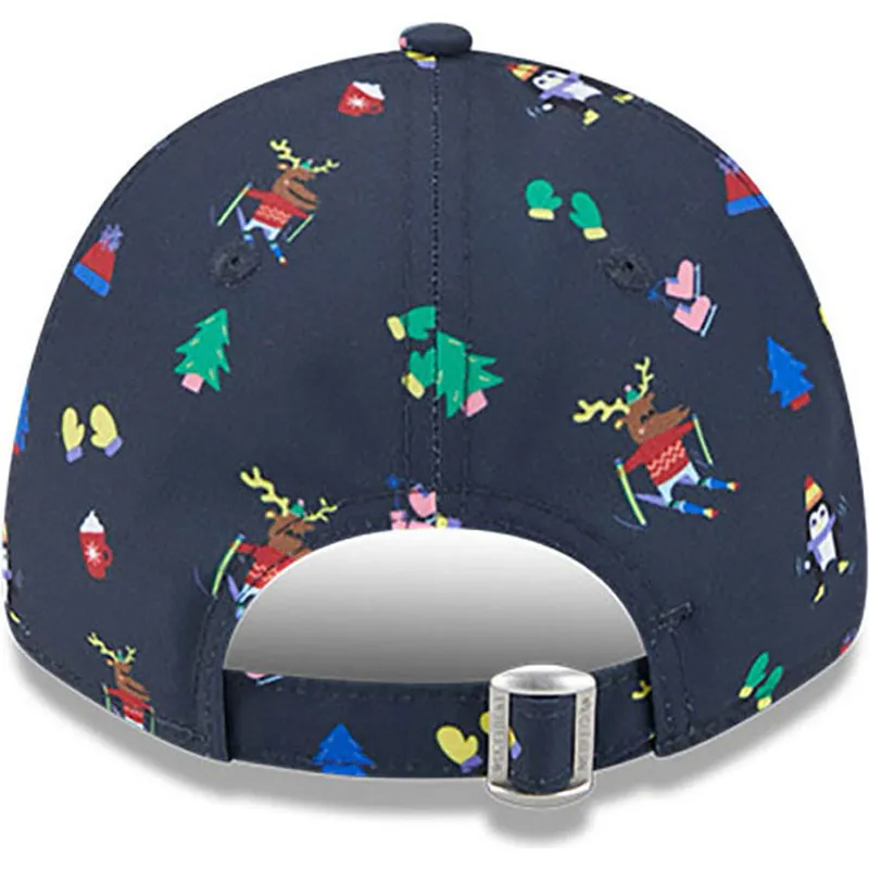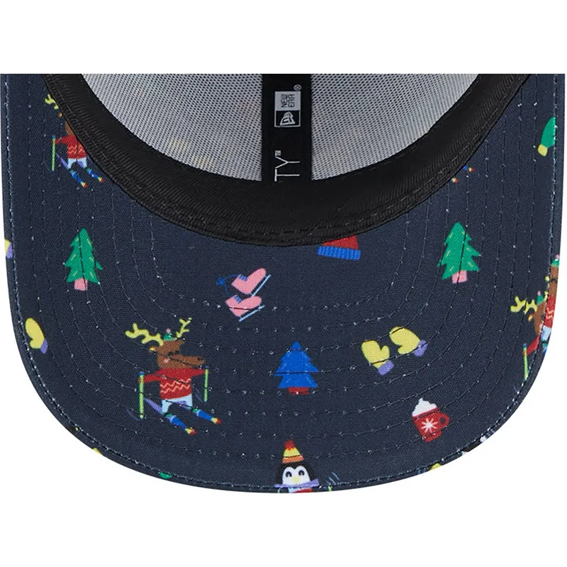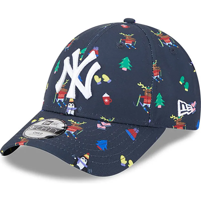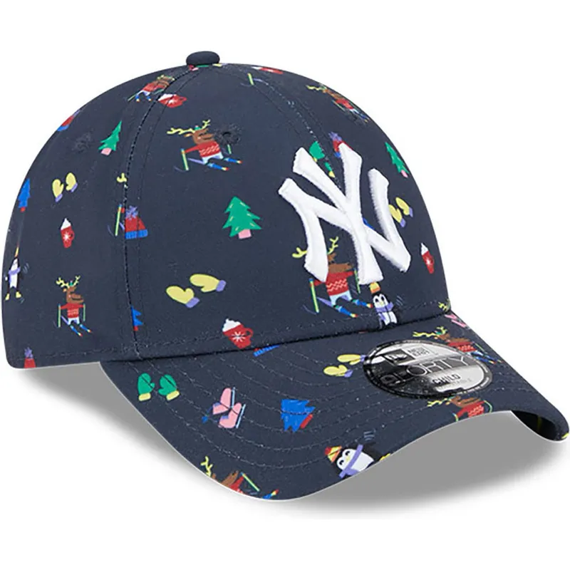 New Era New York Yankees MLB 9FORTY Festive Boys' Navy justerbar buet kasket er det perfekte tilbehør til enhver ung fan af dette ikoniske baseballhold. Med Yankees-logoet broderet foran er denne kasket et must-have for enhver fan af denne berømte franchise. Den justerbare rem bagpå sikrer en behagelig og sikker pasform, så børn kan bære den med stil ved enhver lejlighed.