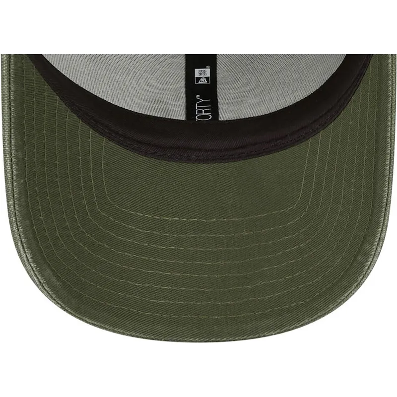 New Era New York Yankees MLB Green Logo 9FORTY Washed Canvas Justerbar Curved Cap er absolut et must-have tilbehør for enhver Yankees fan. Denne unisex design kasket er perfekt til voksne, der ønsker at vise deres stolthed for New York-holdet. Med en justerbar stroplukning tilpasser denne kasket sig til forskellige hovedstørrelser for en behagelig og sikker pasform.