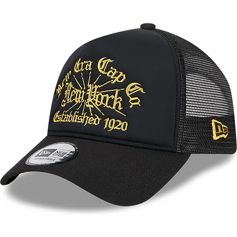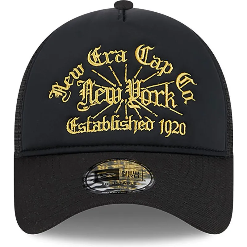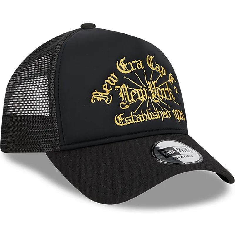 New Era er et mærke, der er anerkendt over hele verden for sine kasketter af høj kvalitet og umiskendelige stil, og den sorte truckerkasket fra A Frame Est 1920 er ingen undtagelse. Denne kasket er lavet af de bedste materialer og garanterer modstand og holdbarhed til at ledsage dig på alle dine eventyr. Dets sorte design gør det nemt at kombinere med ethvert outfit, hvilket gør det til et vigtigt element i dit skab.