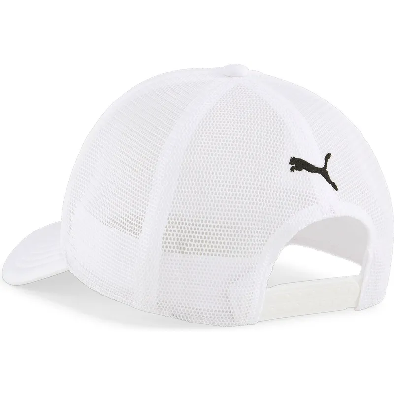 Puma Ferrari Formula 1 Race White Trucker Caps unisex-design gør den til et alsidigt tilbehør, der kan bæres af både mænd og kvinder. Dens trucker-stil giver den et afslappet og afslappet touch, perfekt til at kombinere med urbane og sporty outfits. Derudover giver Ferrari-logoet, der er broderet på fronten, den en atmosfære af eksklusivitet og elegance, der ikke går ubemærket hen.