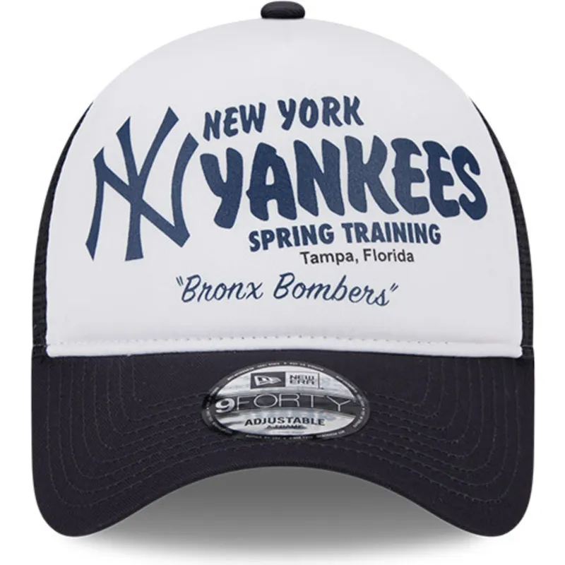 New York Yankees MLB 9FORTY A Frame Team hvid og marineblå trucker cap fra New Era er uden tvivl et must-have tilbehør for enhver fan af dette ikoniske team. Denne kasket er lavet af materialer af høj kvalitet og garanterer holdbarhed og modstand, så du kan nyde den i lang tid. Derudover gør dets alsidige design den perfekt til brug ved enhver lejlighed, uanset om den er i hverdagen eller til sportsbegivenheder.