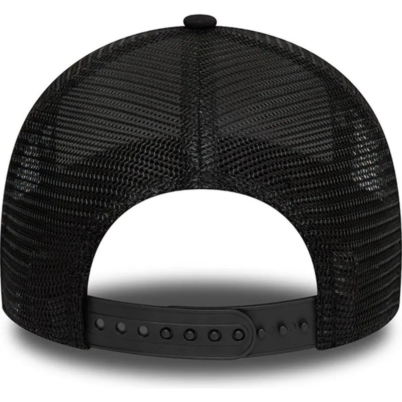 Aprilia Piaggio sorte 9FORTY A Frame Flawless Print trucker cap fra New Era er et vigtigt tilbehør til enhver voksen, der ønsker at vise en urban og afslappet stil frem. Med sin snapback-lukning tilpasser denne kasket sig perfekt til enhver hovedstørrelse, hvilket sikrer en behagelig og sikker pasform. Denne kaskets unisex-design gør den til en alsidig beklædningsgenstand, der kan bæres af både mænd og kvinder.
