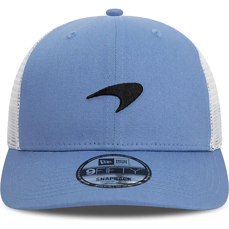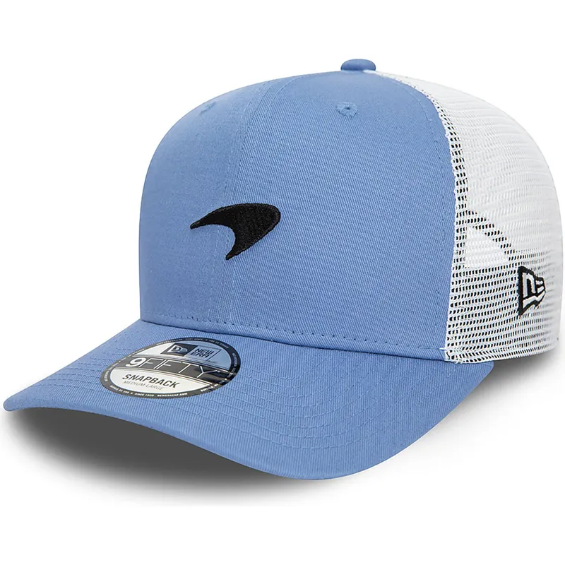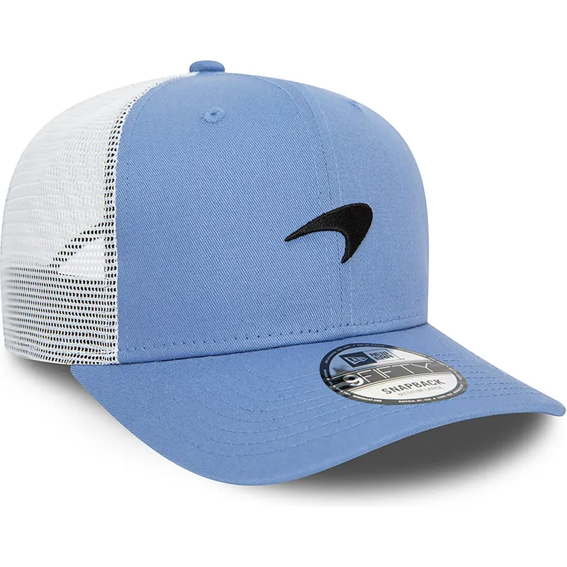 McLaren Racing Formula 1 Seasonal 9FIFTY blå og hvid trucker cap fra New Era er det perfekte tilbehør til fans af det ikoniske racerhold. Denne unisex design kasket er designet til voksne, der ønsker at vise en sporty og moderne stil frem. Med sin snapback-lukning passer den perfekt til komfort hele dagen.