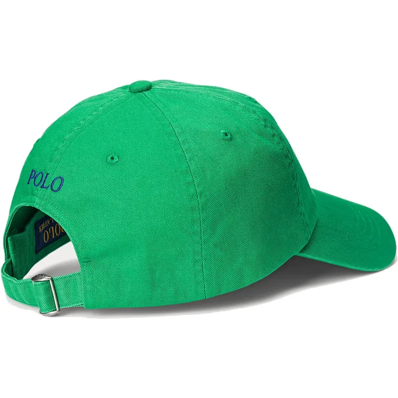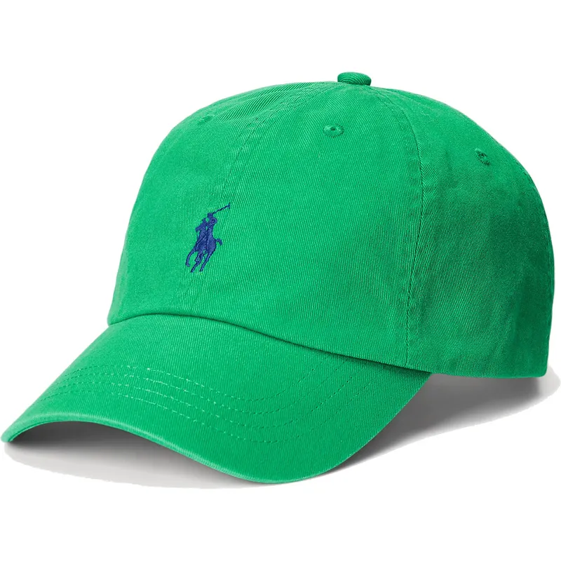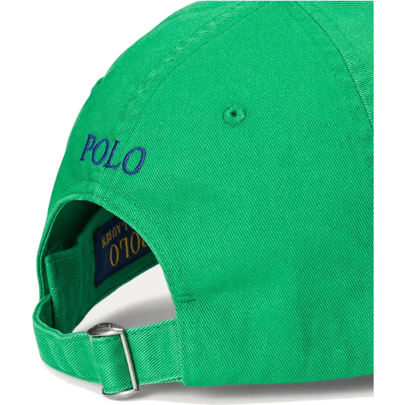 Med Polo Ralph Lauren Cotton Chino Classic Sport justerbar grøn buet kasket med blåt logo, vil du ikke kun beskytte dit ansigt mod solen, men du vil også være iført et modetilbehør af høj kvalitet. Dens justerbare stroplukning garanterer en perfekt pasform til enhver hovedstørrelse, mens dens klassiske og tidløse design gør den til en vigtig brik i enhver garderobe.