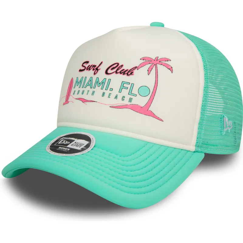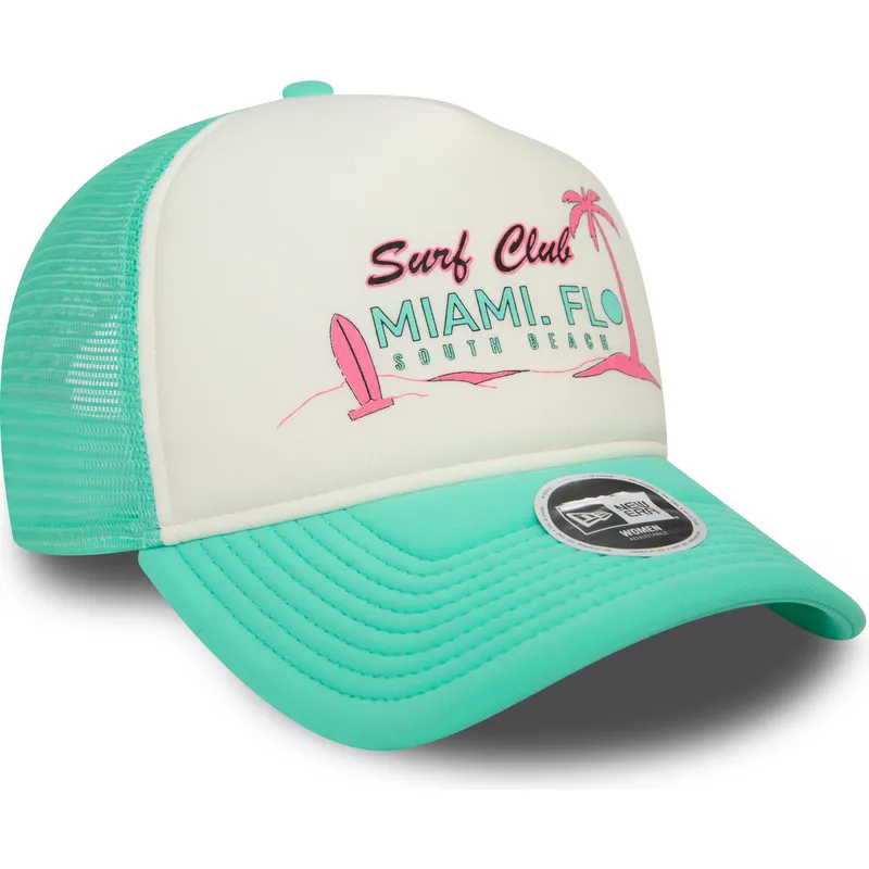Gå ikke glip af muligheden for at købe Miami Surf Club Florida A Frame Foam Front kvinders hvide og grønne trucker cap fra New Era. Dens kvalitet og design gør den til en unik og alsidig mulighed til enhver lejlighed. Få din og skil dig ud med dette modetilbehør!