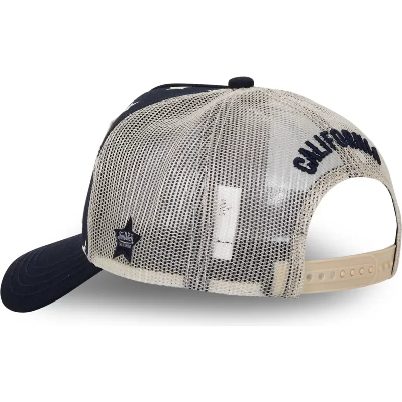 Kombinationen af marineblå og hvide farver giver denne kasket et strejf af elegance og modernitet, der får den til at skille sig ud fra resten. Von Dutch-logoet, der er broderet på fronten, giver det et karakteristisk og autentisk præg, der viser mærkets kvalitet og unikke stil. Kaskettens buede visir beskytter ikke kun mod solen, men giver den også et urbant og afslappet look, der gør den perfekt til enhver lejlighed.