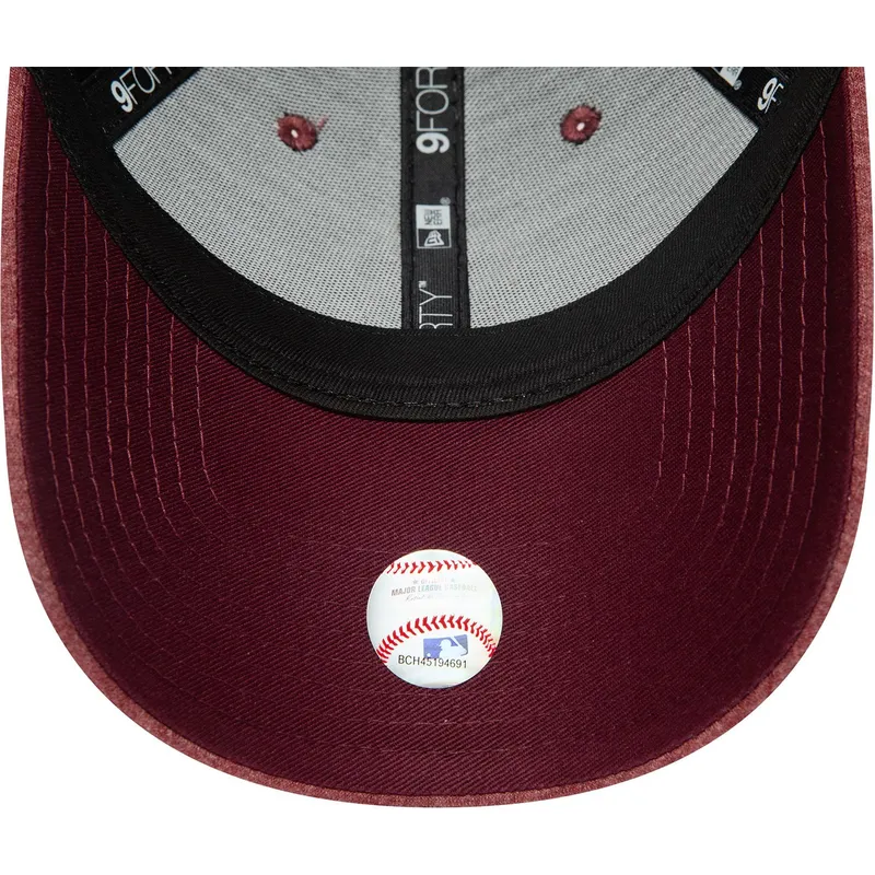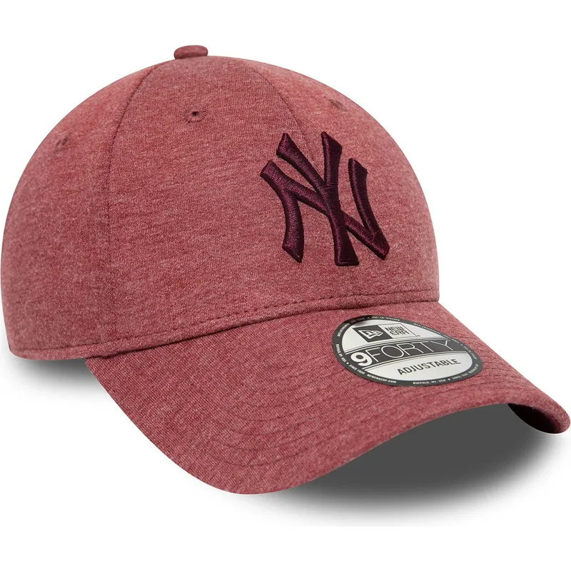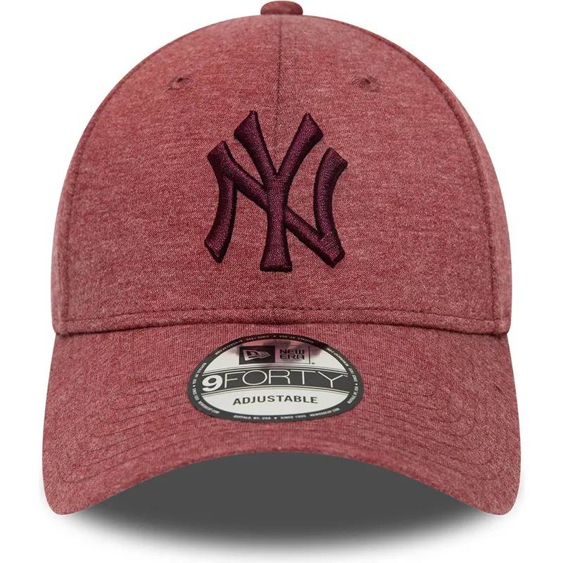 New Era New York Yankees MLB 9FORTY Jersey Essential Maroon Logo Justerbar Curved Cap er det perfekte valg for enhver Yankees-fan. Med sit unisex-design og justerbare rem er denne kasket ideel til voksne, der ønsker at vise deres yndlingsholds logo med stil. New Era-mærket skiller sig ud for kvaliteten af sine produkter, og denne kasket er ingen undtagelse.