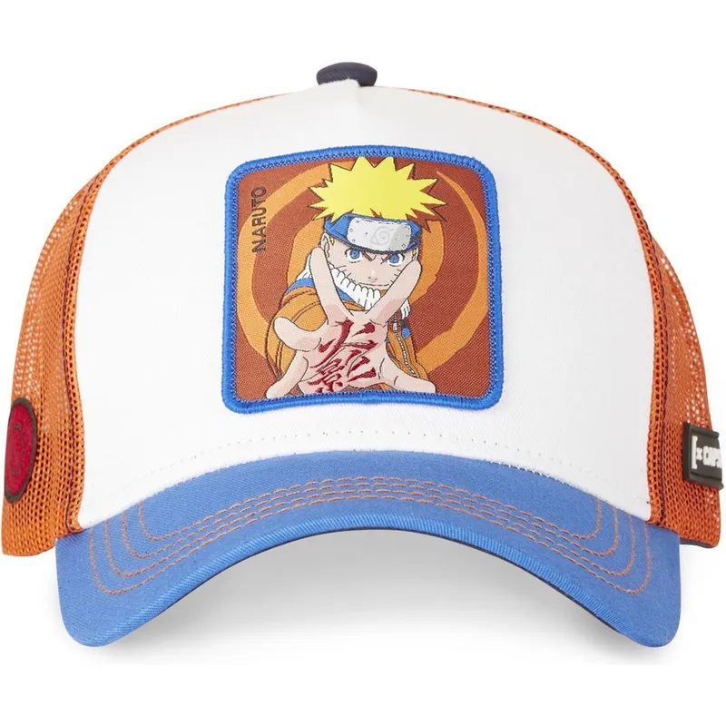 Den hvide, orange og blå Naruto Uzumaki NC1 FIR2 trucker cap fra Capslab er et must-have tilbehør til alle fans af den berømte anime-serie. Med et design inspireret af den ikoniske Naruto Uzumaki-karakter skiller denne kasket sig ud for sine livlige farver og unikke stil. Snapback-lukningen giver dig mulighed for at justere den til den perfekte størrelse, hvilket garanterer komfort og stil i lige grad.