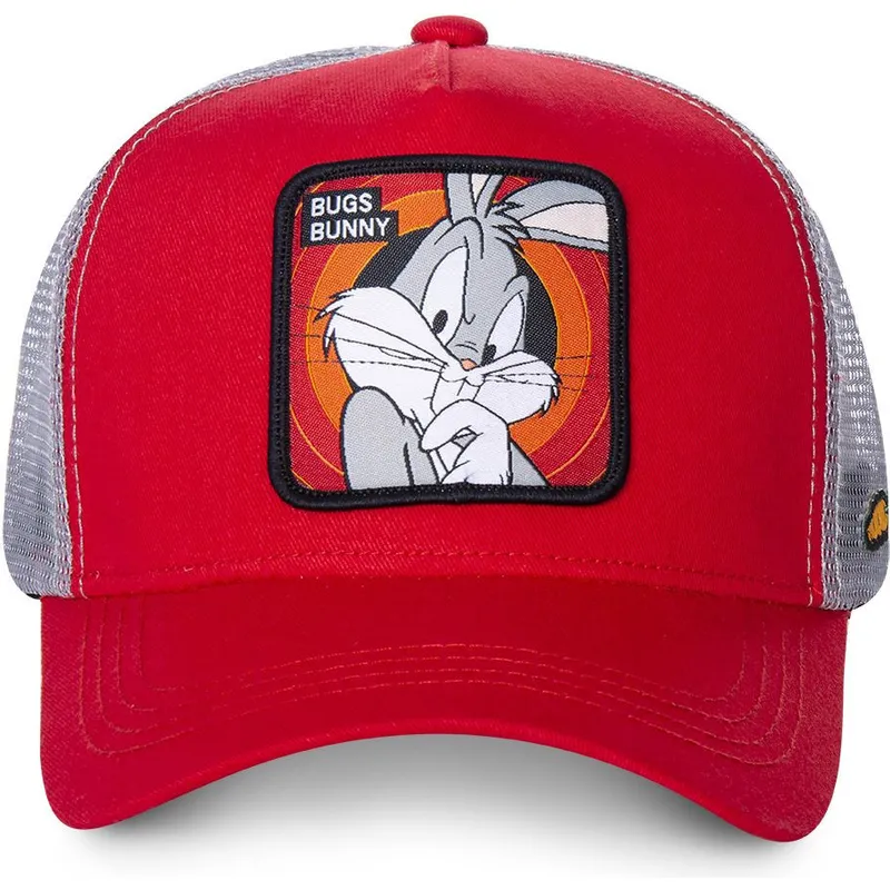 KID_BUG1 Looney Tunes børnehætte i rød og grå trucker fra Capslab er det perfekte tilbehør til små fans af denne sjove animerede serie. Med et slående og farverigt design fanger denne kasket essensen af Looney Tunes i alle detaljer. Snapback-lukningen garanterer en behagelig og sikker pasform, mens trucker-formen giver den en urban og ungdommelig stil.