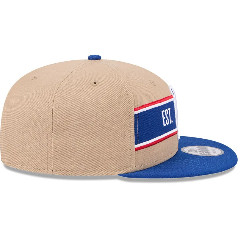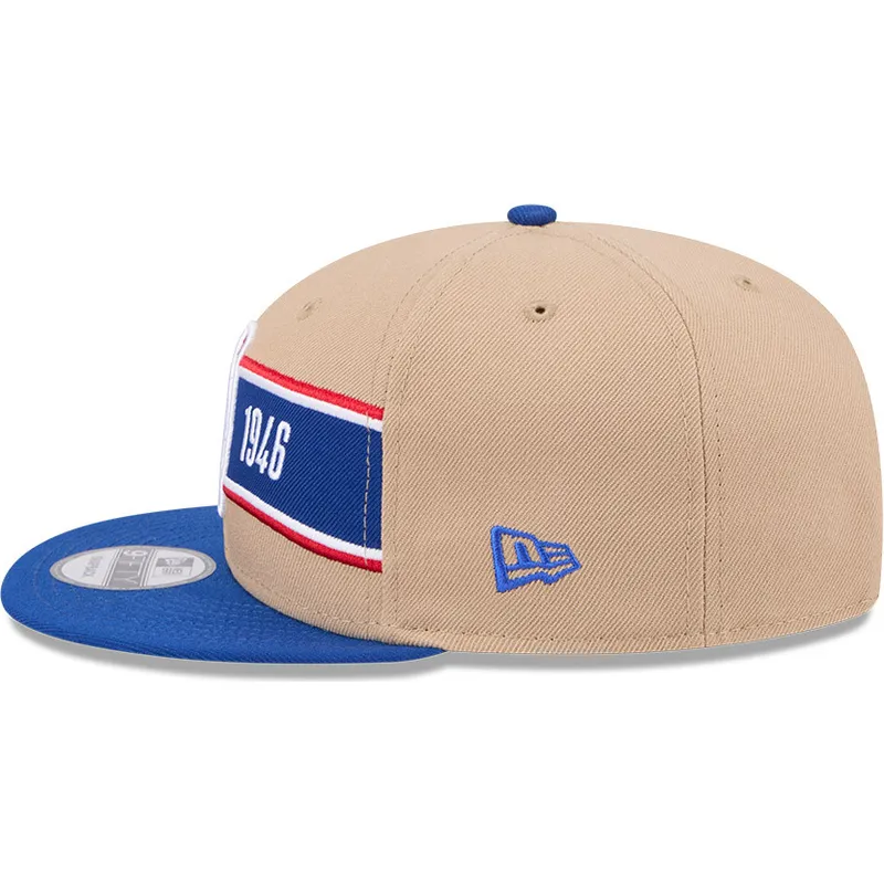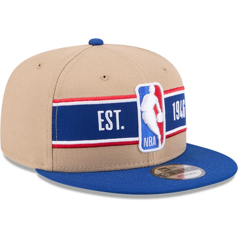 New Era NBA 9FIFTY Draft 2024 Brown and Blue Snapback Flat Cap er et must-have for enhver basketballfan. Med NBA-logoet broderet foran og New Era-logoet på siden er denne kasket perfekt til at vise din passion for sporten. Den justerbare stroplukning sikrer en behagelig, tilpasset pasform til voksne i alle aldre.
