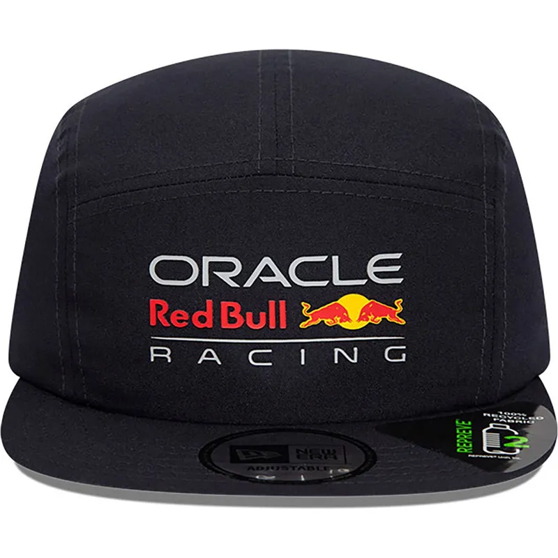 Red Bull Racing Formula 1 Camper REPREVE marineblå justerbar flad kasket fra New Era er et must-have tilbehør for fans af Red Bull Racing teamet. Denne kasket, designet af det berømte New Era-mærke, præsenterer en unik og moderne stil, der kombineres perfekt med Red Bull Racing-logoet. Med en justerbar snorelukning passer denne kasket til enhver hovedstørrelse, hvilket sikrer komfort og perfekt pasform til voksne.