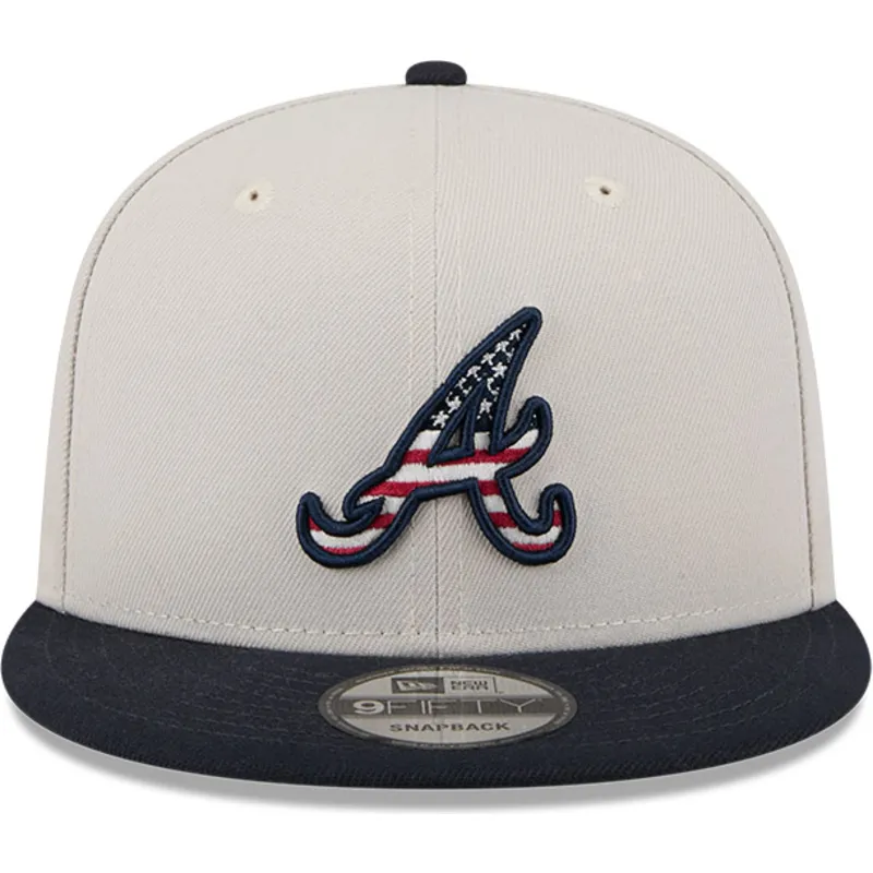 Atlanta Braves MLB flat cap 9FIFTY 4th of July snapback beige og marineblå kasket fra New Era er det perfekte tilbehør til at vise Atlanta Braves sportsånd frem ved enhver lejlighed. Denne kasket fra New Era-mærket har et unikt design, der kombinerer beige og marineblå farver, perfekt til at fejre den 4. juli med stil. Med sin snapback-lukning passer denne kasket perfekt til hovedet på enhver voksen, hvilket garanterer komfort og stil på samme tid.