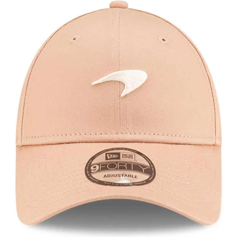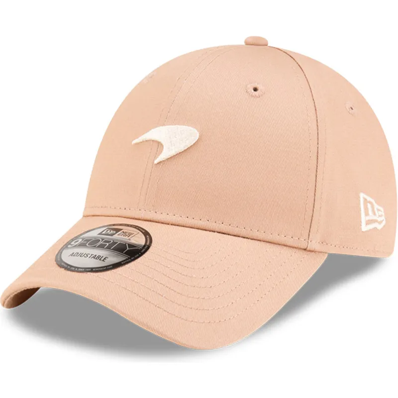 McLaren Racing Formula 1 9FORTY Seasonal Justerbar Beige Curved Cap fra New Era er det perfekte tilbehør til McLaren Racing-fans, der ønsker at vise en sporty og elegant stil på samme tid. Denne kasket, designet af det berømte New Era-mærke, skiller sig ud for sin komfort og alsidighed, hvilket gør den ideel til voksne, der ønsker at fremhæve deres passion for holdet ved enhver lejlighed.