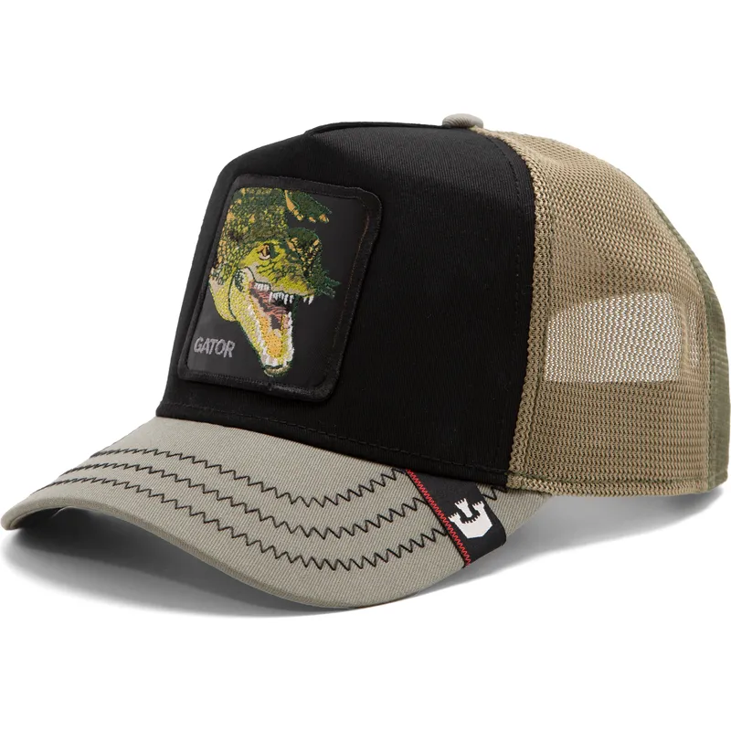 Den sorte og krokodillegrønne Gator Tri Tone The Farm trucker kasket fra Goorin Bros. er uden tvivl en af de mest slående stykker i samlingen af dette berømte mærke. Med sit unisex-design og snapback-lukning er denne kasket perfekt til voksne, der leder efter et strejf af unik og original stil i deres outfit.