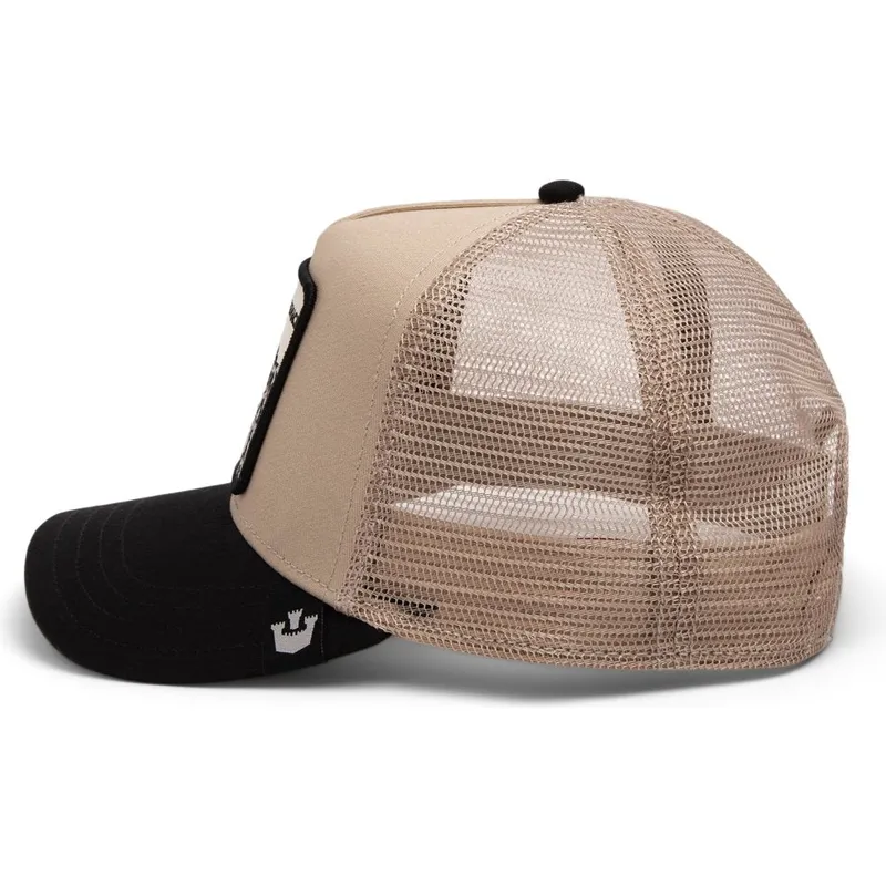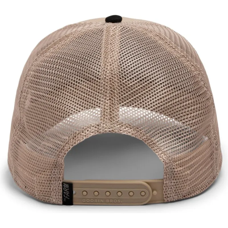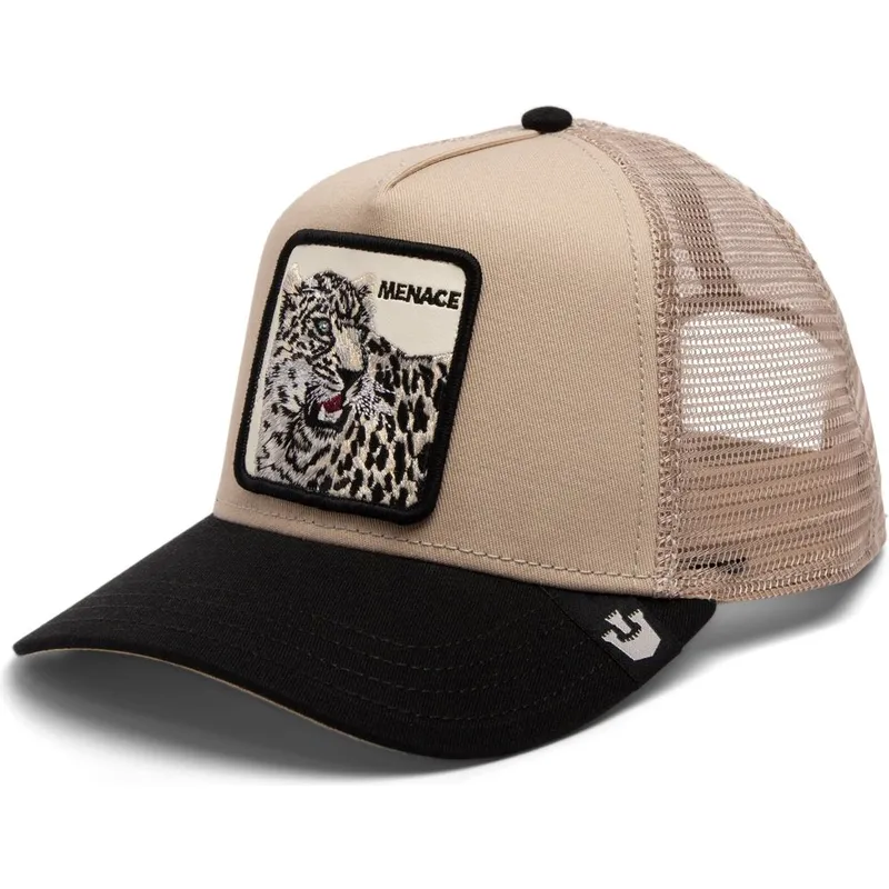 The Menace The Snow Leopard beige og sort leopard trucker kasket fra Goorin Bros. er et must-have i enhver stor katteelskers skab. Med sit beige og sorte leopardprint er denne kasket en fed og elegant stilsætning. Goorin Bros.-logoet, der er broderet foran, tilføjer et ekstra strejf af sofistikering.