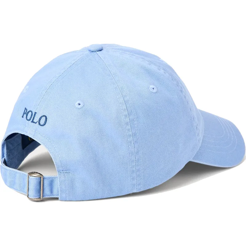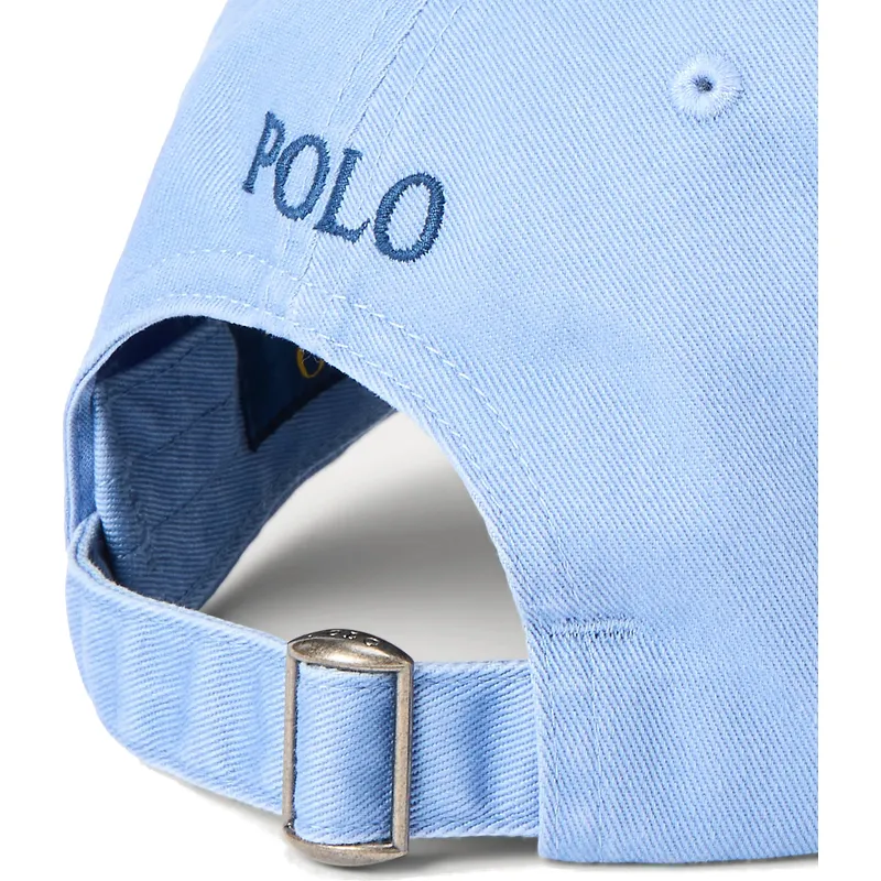 Den lyseblå justerbare buede kasket med blåt Cotton Chino Classic Sport-logo fra Polo Ralph Lauren er det perfekte tilbehør til at komplementere ethvert afslappet outfit. Med sit unisex-design er denne kasket ideel til både mænd og kvinder, der leder efter et strejf af sporty stil i deres daglige look. Den justerbare stroplukning giver mulighed for en behagelig, tilpasset pasform til enhver hovedstørrelse, hvilket sikrer en perfekt pasform hver gang.