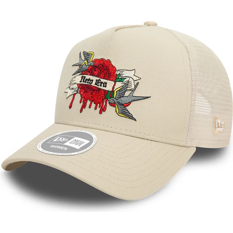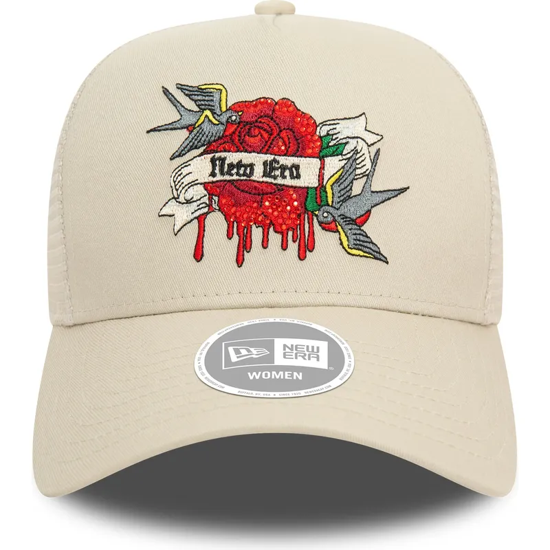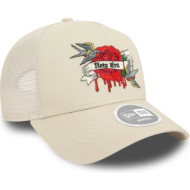 9FORTY E Frame Flower Birds beige trucker-hætte til kvinder fra New Era er det perfekte supplement til de kvinder, der leder efter et tilbehør, der kombinerer stil og komfort. Dens unikke og feminine design gør den til en vigtig brik i enhver garderobe, mens dens snapback-lukning sikrer en perfekt pasform til enhver lejlighed. Uanset om du går en tur gennem byen eller til en eftermiddag med shopping med venner, vil denne kasket være din bedste allierede til at skille sig ud med stil.