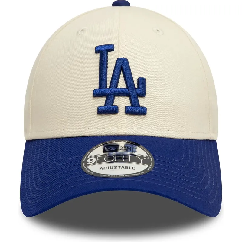 New Era Beige og Blue Los Angeles Dodgers MLB 9FORTY Color Block justerbar buet kasket er et alsidigt tilbehør, der passer til enhver stil. Uanset om den skal kombineres med et afslappet look eller for at give et mere formelt outfit et sporty touch, er denne kasket det perfekte valg. Plus, dens justerbare stroplukning sikrer en behagelig og sikker pasform for enhver voksen, der bærer den.