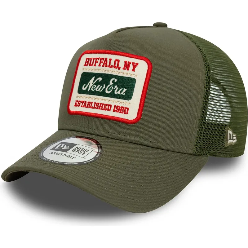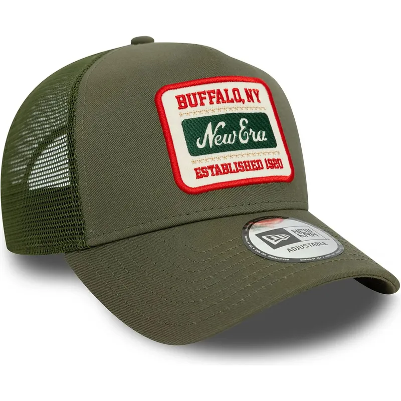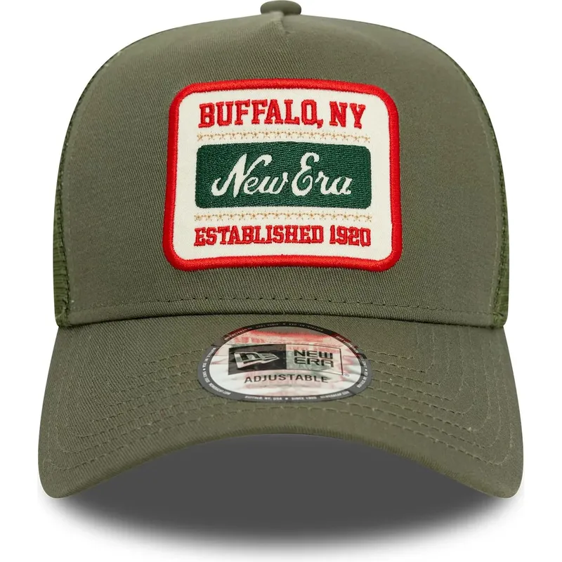 New Era 9FORTY A Frame Patch grønne trucker cap er det perfekte tilbehør til at komplementere dit outfit. Denne kasket har et unisex-design og er ideel til voksne, der ønsker at se moderigtigt og stilfuldt ud. Snapback-lukningen gør, at den kan justeres til den ønskede størrelse, hvilket giver komfort og alsidighed til dem, der bærer den.