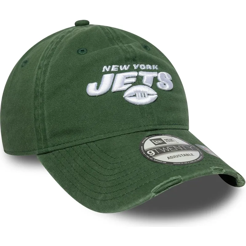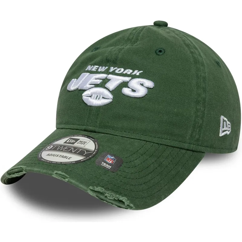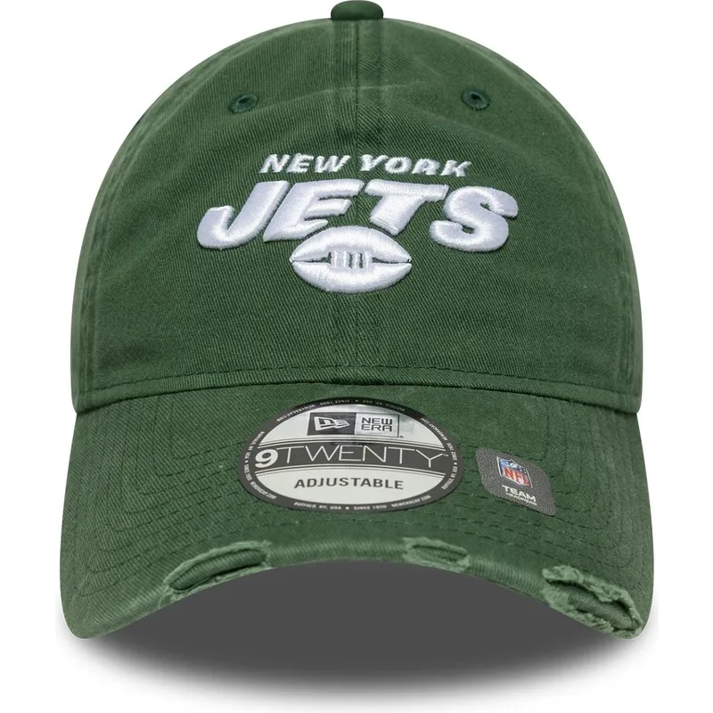 New Era New York Jets NFL 9TWENTY Washed Distress Curved Back Adjustable Cap i grøn er et must-have for enhver fan af holdet. Denne kasket, designet af det berømte New Era-mærke, skiller sig ud med sin klassiske stil og komfort, ideel til voksne, der leder efter et tilbehør, der kombinerer funktionalitet og en passion for sport. Dens livlige grønne farve repræsenterer trofast New York Jets' signaturfarver, hvilket giver holdets fans mulighed for at vise deres loyalitet på en autentisk og karakteristisk måde. Derudover afviger formen på denne kasket fra konventionelle modeller, hvilket giver dig et unikt valg blandt de forskellige kasketter, der findes på markedet.