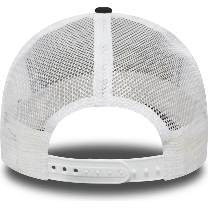 Designet af New Era New York Yankees MLB Clean A Frame Black Trucker Cap er enkelt, men elegant. Kaskettens dybe sorte farve står i kontrast til det ikoniske Yankees-logo, som er broderet på forsiden. Den buede skygge tilføjer et retro, men moderne touch, hvilket gør den til en tidløs kasket.