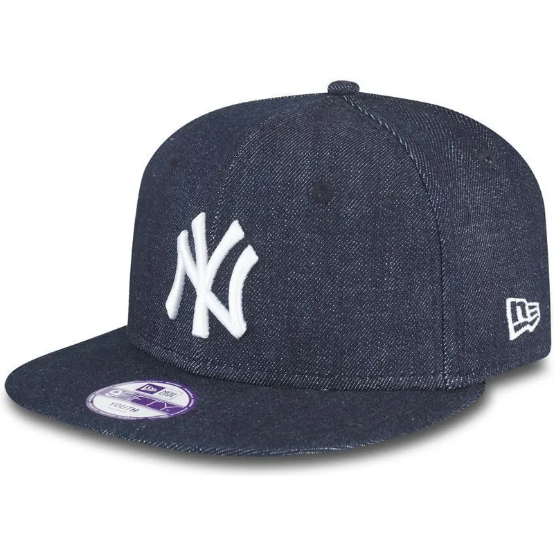 New York Yankees MLB 9FIFTY Essential Denim marineblå snapback flad kasket til drenge fra New Era