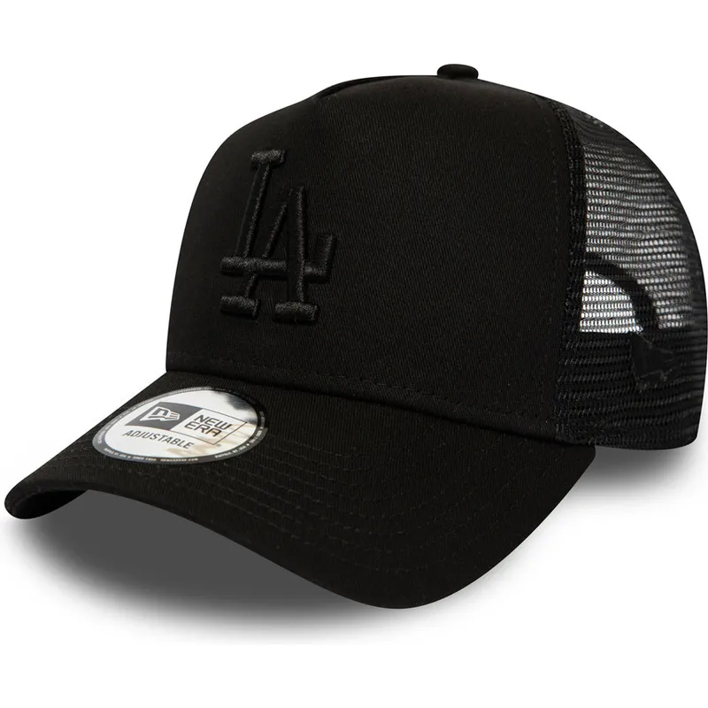 Sort trucker-kasket med sort logo League Essential A Frame fra Los Angeles Dodgers MLB fra New Era