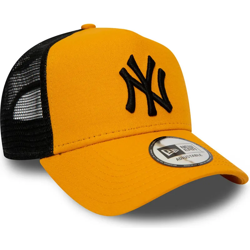 Orange trucker cap with black logo League Essential A Frame New York Yankees MLB by New Era