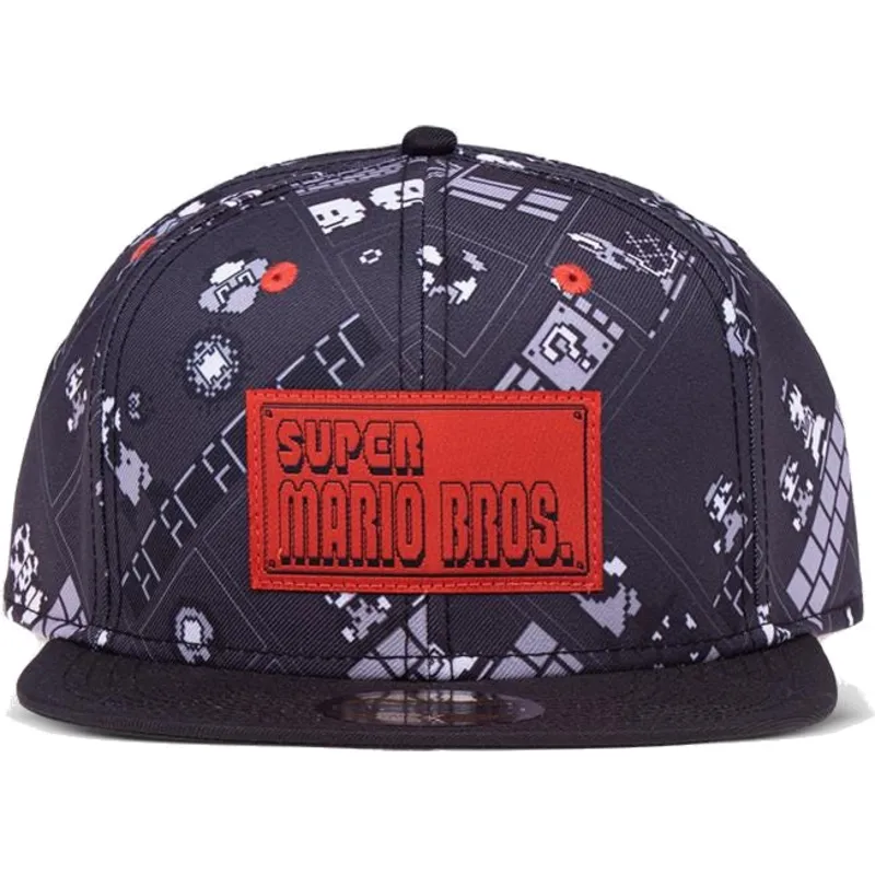 Sort snapback kasket med flad skygge 8Bit Super Mario Bros. fra Difuzed