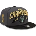 Grå og sort snapback 9FIFTY fladskygget kasket Milwaukee Bucks NBA Champions fra New Era