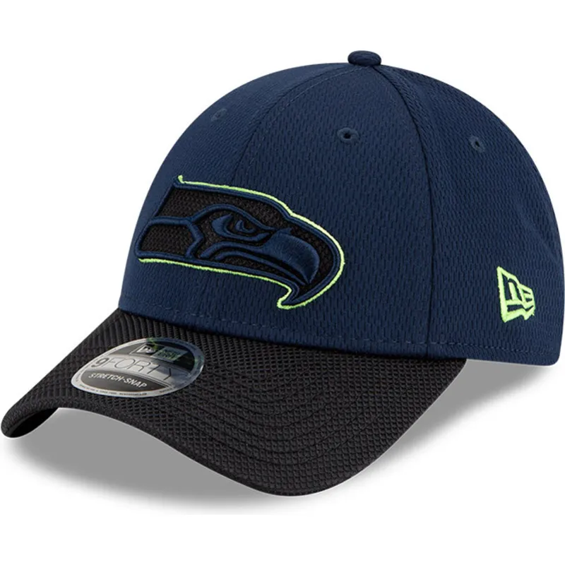 Seattle Seahawks NFL New Era 9FORTY Stretch Snap Sideline Road marineblå og sort snapback buet kasket