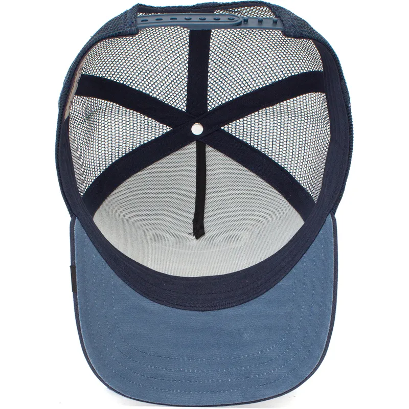 Goorin Bros. The Silver Fox The Farm marineblå truckerhat har en broderet patch af høj kvalitet. Denne detalje tilføjer et strejf af elegance og kvalitet til hatten. Ræven er hattens signaturdyr og er fremtrædende på patchen. Rævedesignet er meget realistisk og omhyggeligt broderet for et unikt look.