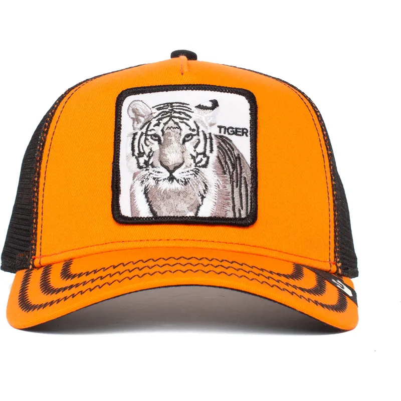 Goorin Bros. trucker-kasketten er et must-have tilbehør til enhver dyre- og modeentusiast. Den broderede mærkat af en hvid tiger på en sort baggrund på forsiden af kasketten er den detalje, der gør den unik og speciel.