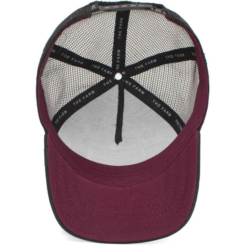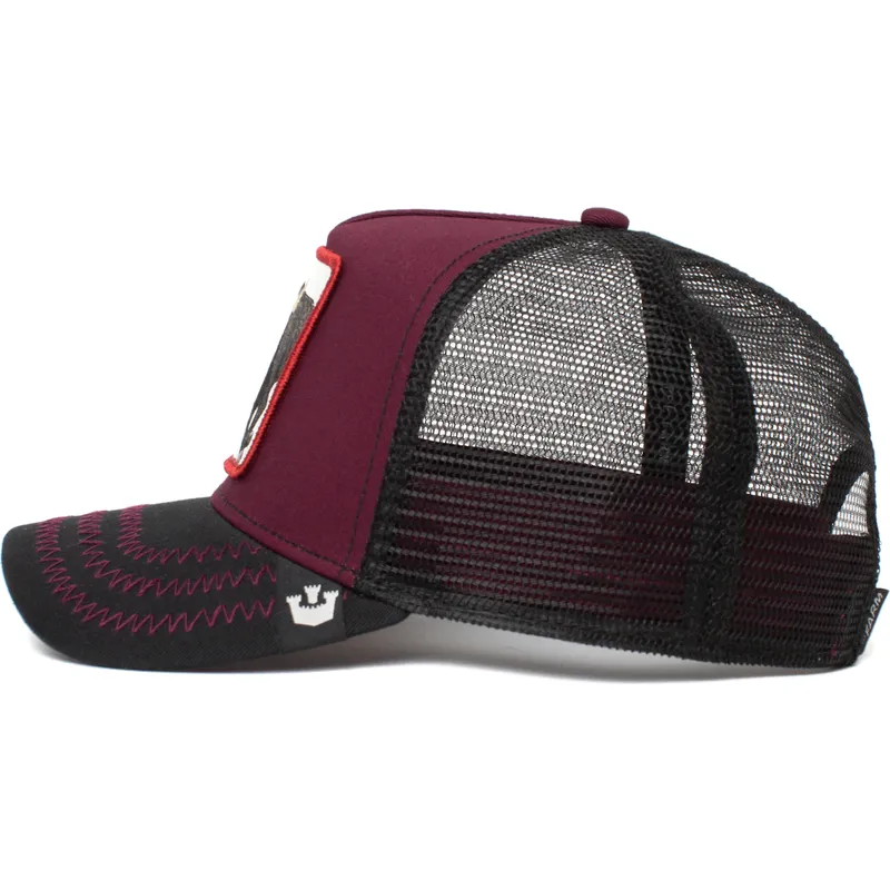 Ud over den broderede tyr på forsiden har denne truckerkasket også Goorin Bros.-branding broderet på siden af skyggen. Dette er et tegn på kvalitet og stil, og dens tilstedeværelse på kasketten bekræfter, at du får et exceptionelt modestykke.