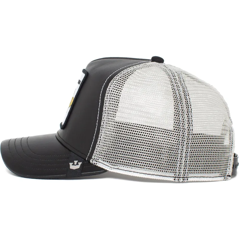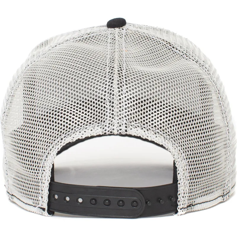 Goorin Bros. Queen Hive Boss Bee The Farm sort-hvide truckerkasket er et unikt stykke tøj, der er blevet en favorit for mange. Denne kaskets unisex-design er perfekt til enhver voksen, der ønsker at se stilfuld og moderigtig ud. Med snapback-lukningen tilpasser kasketten sig perfekt til enhver hovedstørrelse.