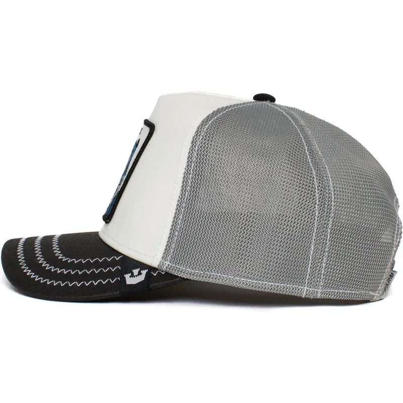 Den sort-hvide farvekombination er altid et sikkert bud i modeverdenen. I dette tilfælde leger Goorin Bros. King Sparkle The Farm sort-hvide tiger trucker-kasket med disse kontraster for at skabe et unikt og iøjnefaldende stykke tøj. Den broderede tiger på forsiden er det element, der tilføjer det strejf af dristighed og dristighed, som enhver kasket bør have.
